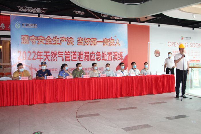 為全面提升突發(fā)燃?xì)馐鹿实膽?yīng)急響應(yīng)水平,有效預(yù)防和應(yīng)對(duì)事故的發(fā)生,檢驗(yàn)各應(yīng)急搶險(xiǎn)人員的應(yīng)急響應(yīng)、應(yīng)急處置、協(xié)調(diào)組織及救援能力,確保人員密集場(chǎng)所燃?xì)夤獍踩瑫邕h(yuǎn)能源仙游分公司于2022年6月24日上午9時(shí)聯(lián)合消防大隊(duì)、中駿世界城綜合體共同組織開展“天然氣管道泄漏應(yīng)急處置演練”活動(dòng)。演練活動(dòng)在曠遠(yuǎn)能源仙游分公司總經(jīng)理柯軍的宣布下有序開展。本次事故模擬中駿世界城綜合體內(nèi)部三樓大豐收餐飲店連接法蘭漏氣引發(fā)..